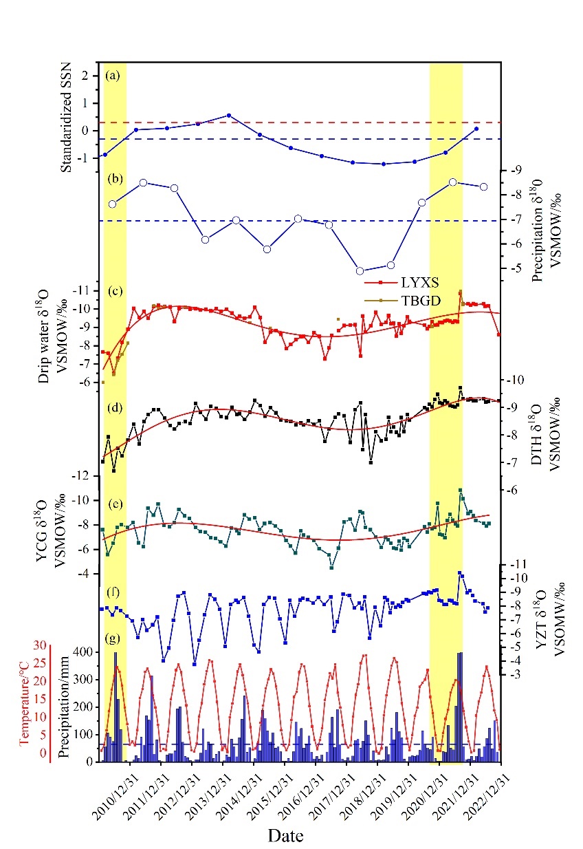 近日,52手机a片 岩溶环境重庆市重点实验室、重庆金佛山喀斯特生态系统国家野外科学观测研究站杨琰教授课题组在Journal of Hydrology在线发表了关于太阳活动对现代洞穴沉积物δ18O影响的最新研究成果。