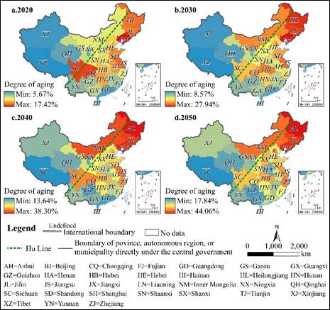 图 2 2020-2050年中国31个省份农村老龄化的空间分布