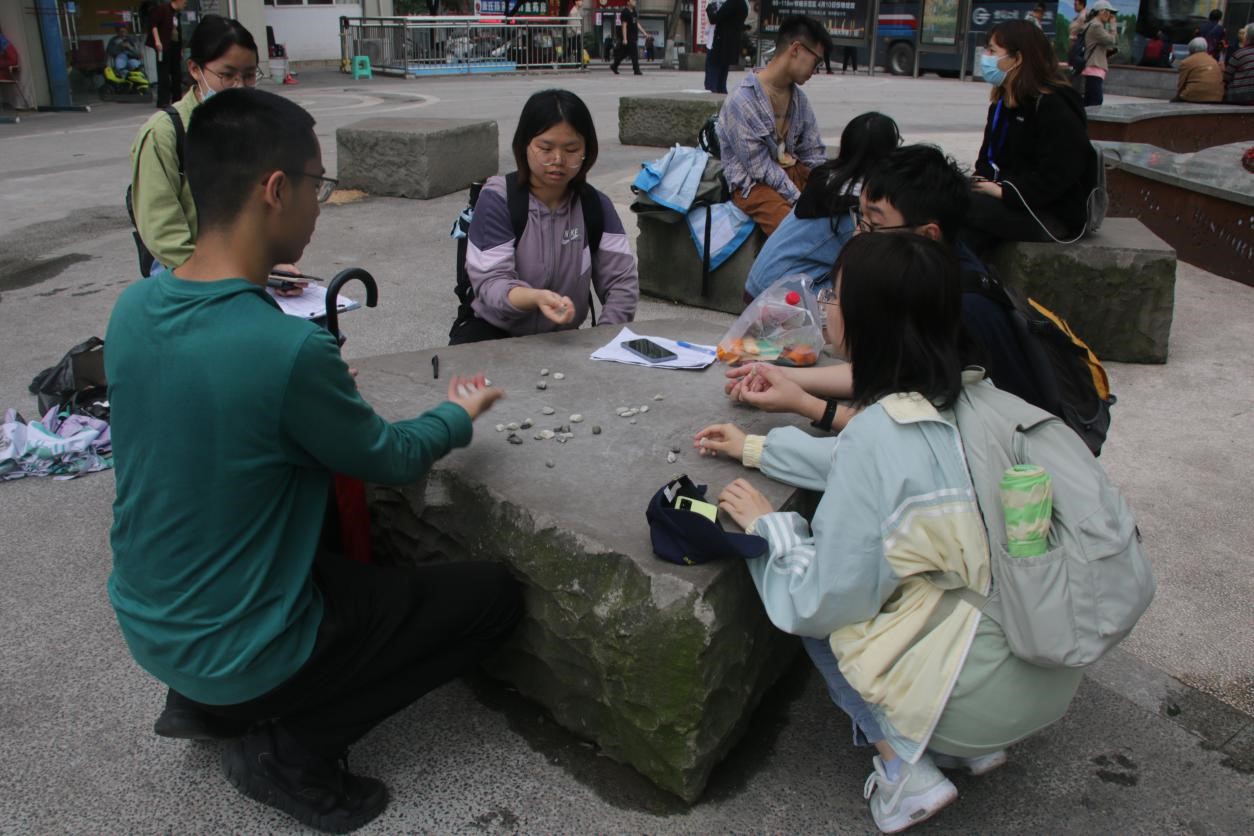 闷热的天气没有拖慢选手们前进的脚步,各组选手不甘示弱,你追我赶,他们在绵绵细雨中辨识地图走向,分析最短路线,和组员并肩跑向下一个打卡点。本是临时组建的队伍展现出强大的团体合作能力,“知识达人”负责答题,“游戏达人”是游戏环节的总指挥……大家全身心投入到活动中,每个人都扮演着队伍里不可替代的角色。为保证参赛人员的安全及活动的顺利进行,我院团委学生会在各打卡点均安排多名工作人员,更分别在游戏点和打卡点设置了补给站,为选手们提供高效、全面的帮助。