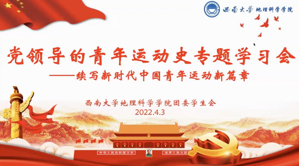会议第一项议程,由团委副书记侯程耀同学领学理论学习—党的青年运动史专题。侯程耀同学从党的奋斗历程出发,重点带领大家学习优秀青年事迹。首先,通过播放“最美奋斗者”向秀丽的感人故事和在南海撞机事件中壮烈牺牲的王伟烈士的视频,唤起同学们的责任意识和爱国情感;随后,通过讲述在北京冬奥会中摘金夺银的谷爱凌的奋斗故事和我校“西小兰”志愿者团队、 “拾理者”团队的工作经历,激发同学们的奋斗热情,提高同学们的上进意识。议程最后,来自体育部的范美怡同学和来自组织部的朱帅同学分享了本次专题学习感悟。