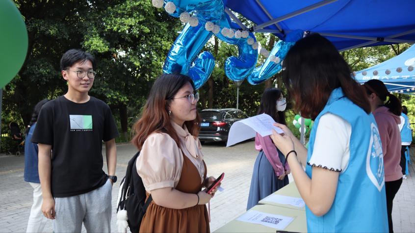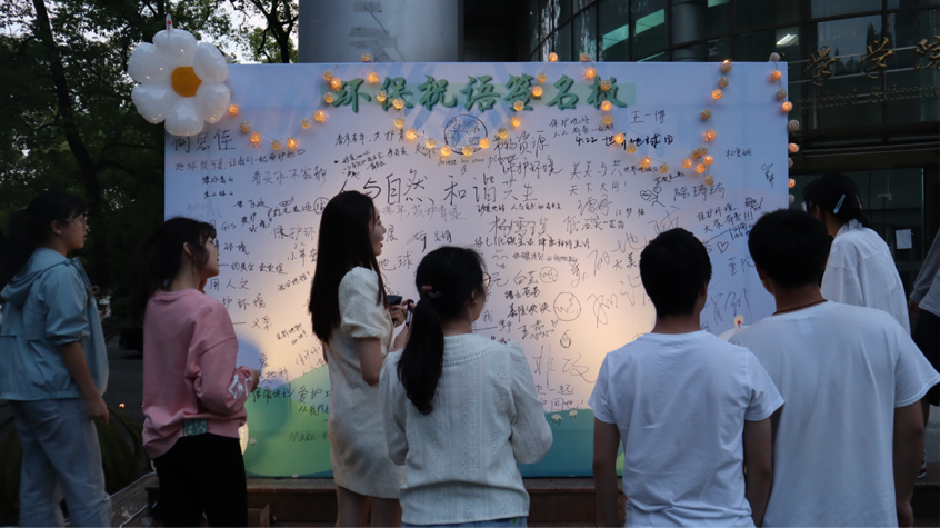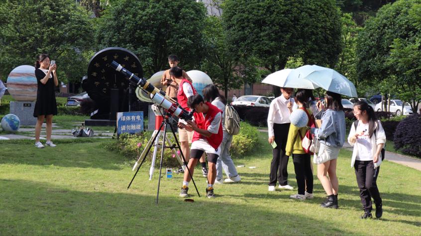 在碳现状知识科普展览区,通过知识问答、“低碳生活”小游戏和个人碳排放量计算等环节,现场的同学们更直观地了解了“碳达峰”“碳中和”与我们生活的紧密联系,纷纷在签名墙写下“保护我们的地球家园”、“人与自然和谐共生”等美好承诺与祝愿。天文观测环节,大家在工作人员的指导下通过天文望远镜观察天象,参观天文地质馆,在学术与趣味相结合的讲解中学习了解天文地理知识,收获日常观测天象的技能,受益匪浅。