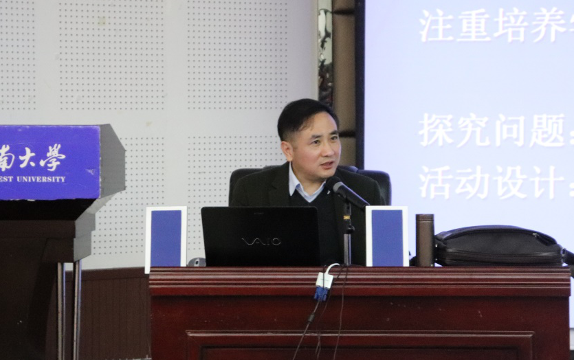 3月10日下午,由学院协同创新育人中心主办的“教师专业成长”专题讲座在学院101报告厅举行。重庆市教育科学研究院地理教研员、中学高级教师、《地理教育》副主编张文革老师应邀担任主讲人。100余名师范生聆听了讲座,讲座由学院副院长王勇教授主持。