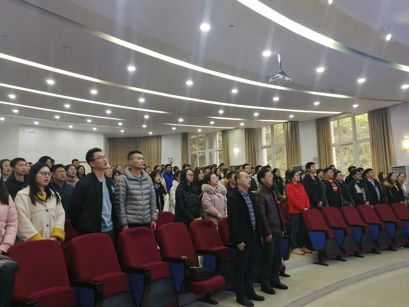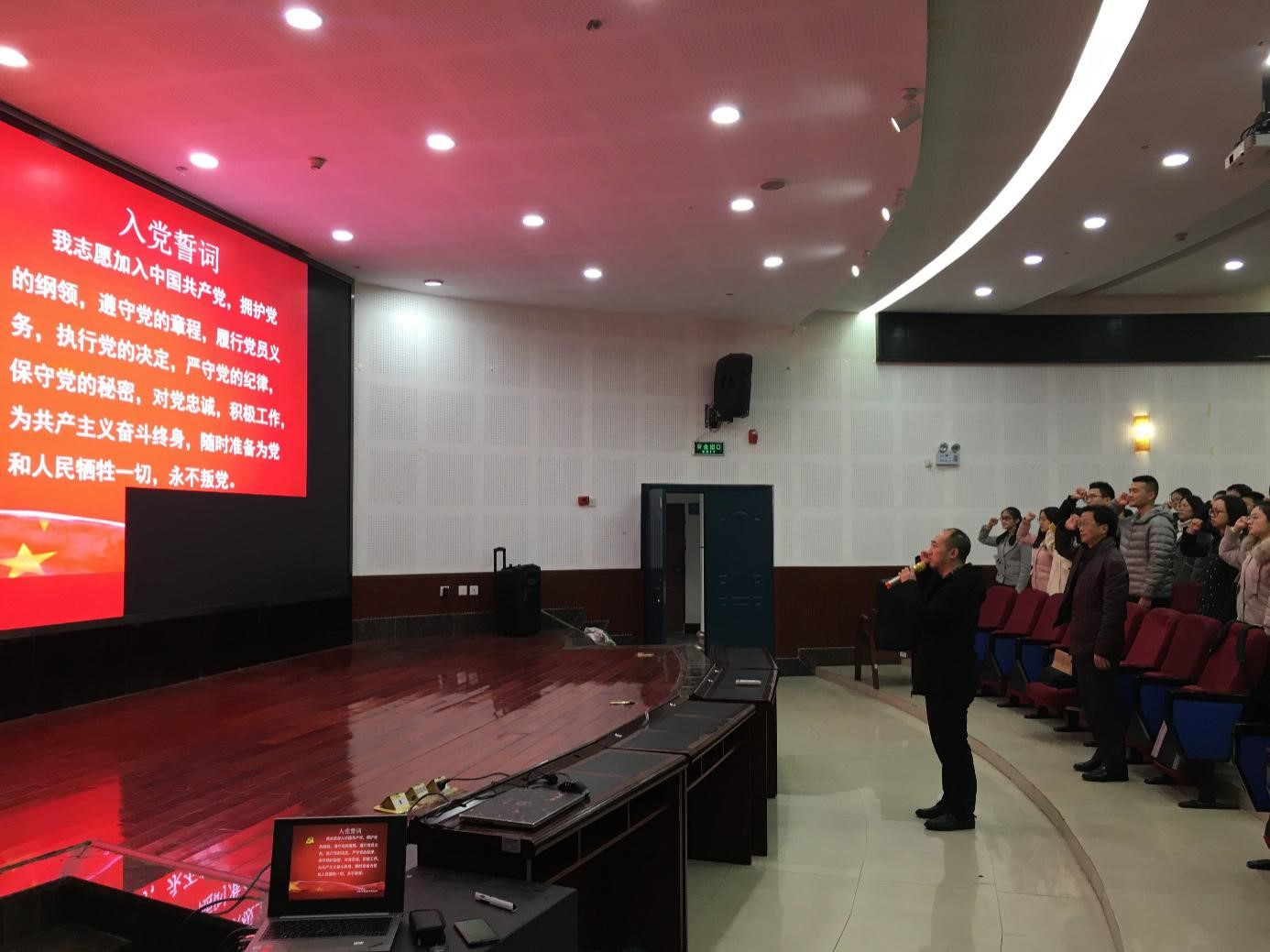 第二环节为新党员宣读入党誓词,老党员重温入党誓词。首先全体起立奏唱《国际歌》,随后学院副院长王勇同志带领全体党员庄严宣誓,铿锵有力的宣誓声响彻整个报告厅,庄重肃穆的宣誓,使每一位党员同志心潮澎湃,进一步坚定了为人民服务的立场信念。