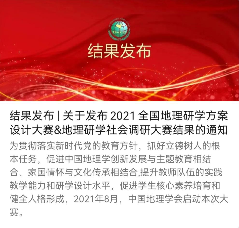 为贯彻落实新时代党的教育方针,抓好立德树人的根本任务, 2021年8月,中国地理学会启动了“2021全国地理研学方案设计大赛&地理研学社会调研大赛”。近日,中国地理学会公布了本次大赛的结果。52手机a片 组建的多支队伍荣获佳绩,我院学子共有9支参赛队伍获奖,其中一等奖(最高奖)2项、二等奖2项、三等奖3项、优秀奖2项。