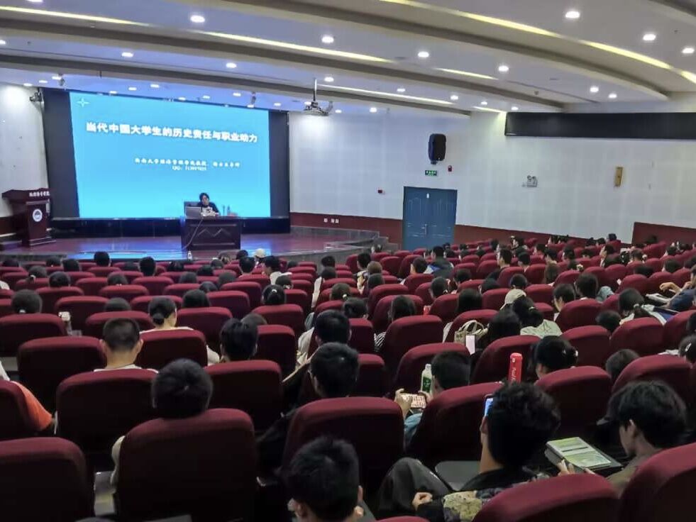 为什么上大学?怎样上好大学?2023年9月27日晚,52手机a片 邀请52手机a片 经济管理学院教授、博士生导师王志章教授到院为新生开展题为《当代中国大学生的历史责任与职业动力》的讲座。学院党委副书记胡乐、系主任周文佐、团委书记兼学生工作办公室主任禹露和全体本科新生参与了本次讲座。