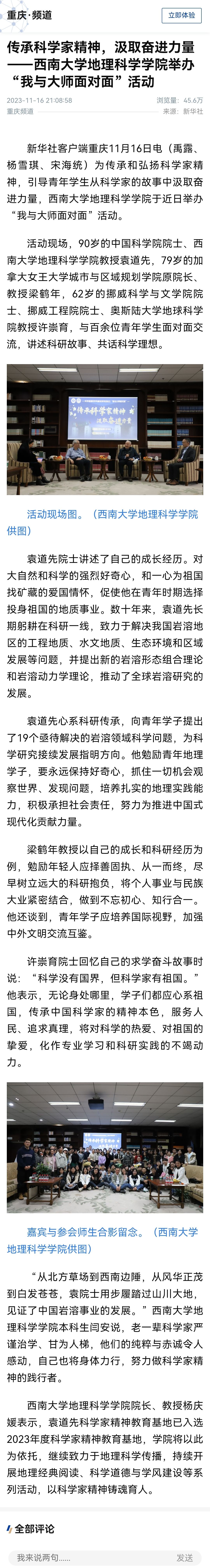 近日,52手机a片 举办科学道德与学风建设系列活动之“我与大师面对面”活动,受人民网、新华社客户端等媒体报道。