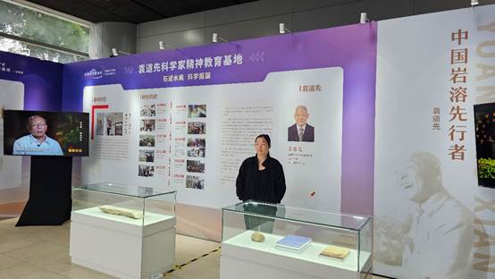袁道先科学家精神教育基地在展板中高度概括了袁道先院士的工作历程、科研成果、学术思想和获奖情况,以时间轴的方式,生动展示了袁道先数十年如一日的科学报国故事;同时,也展示了袁道先科学家精神教育基地自2023年获批建设以来开展的有较大社会影响力的活动,比如科学家精神进校园”“大师面对面等。此外,展出的实物展品包括袁道先亲自采集的岩石样品及其代表著作。