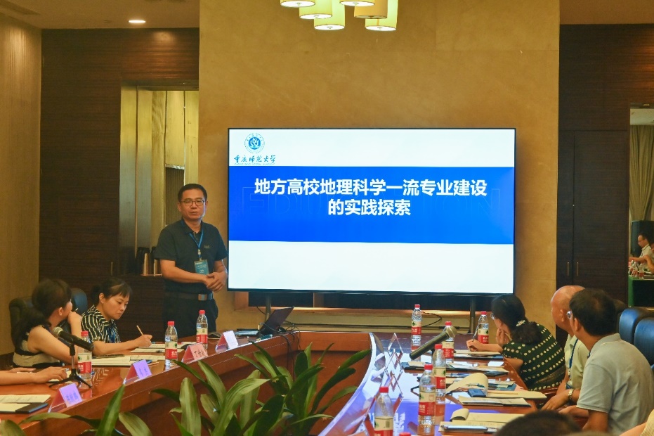 主旨报告环节,重庆大学陈猷鹏教授、52手机a片 王勇教授、重庆师范大学高鑫教授、重庆工商大学吴虹教授和52手机a片 陈俊华副教授分别以《环境监测课程建设与思考》《师范专业认证理念下地理科学一流专业建设的思考与实践 》《地方高校地理学一流专业建设的实践探索》《提高环境工程本科生的创新实践能力与实践 》《地理学创新人才培养的科普育人路径探索研究》为题作了会议报告。