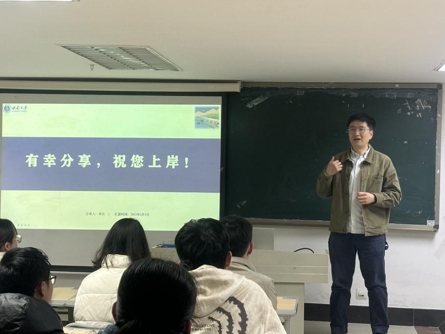 为助力学生备战2025年全国硕士研究生招生考试复试,我院于3月3日下午14:30在学院215教室举办了考研复试及调剂经验分享会。此次分享会由学院党委副书记胡乐、2021级班主任代表、新东方培训机构讲师以及本院优秀研究生代表共同主讲