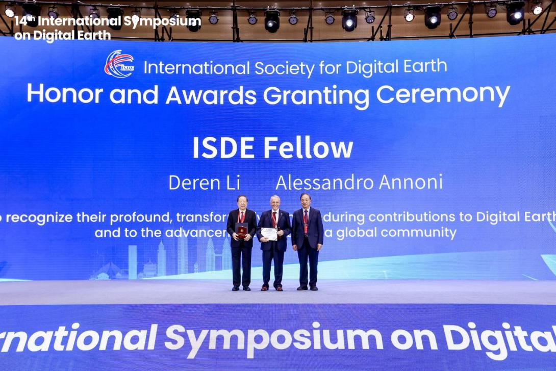 开幕式上,国际数字地球学会颁发了重要荣誉和奖项。为表彰李德仁院士在摄影测量、遥感及地球空间信息科学领域的卓越成就,以及学会主席Alessandro Annoni博士为引领学会使命前瞻、推动数字地球愿景所做出的杰出贡献,学会特授予两位“国际数字地球学会会士”的最高荣誉称号。