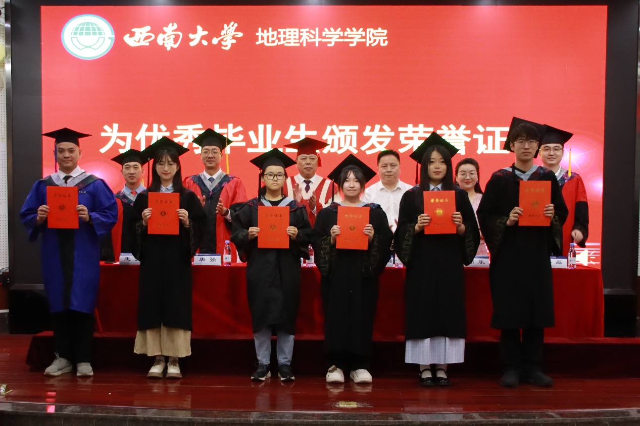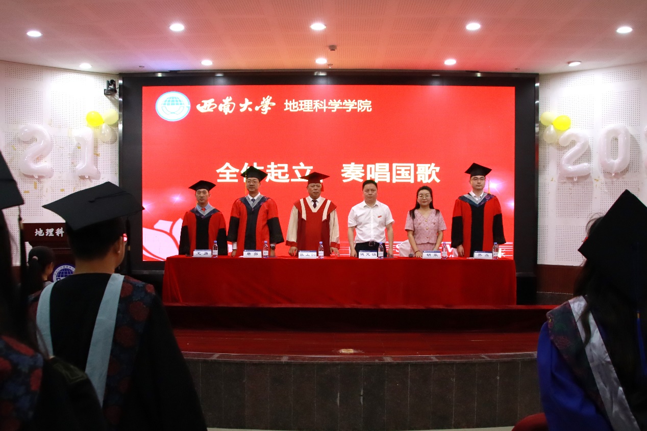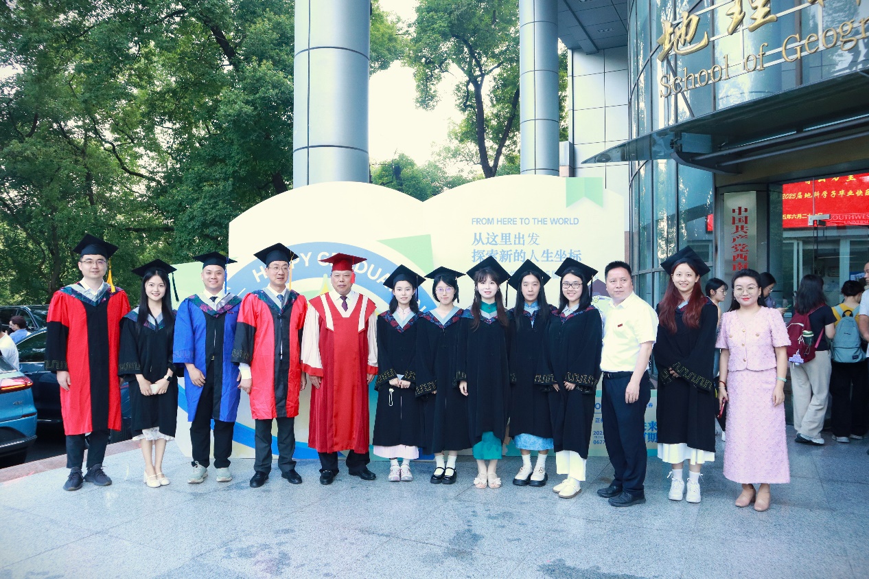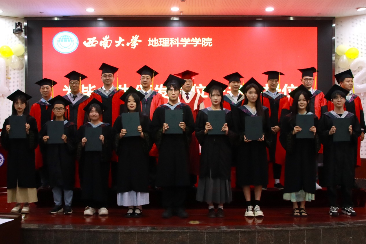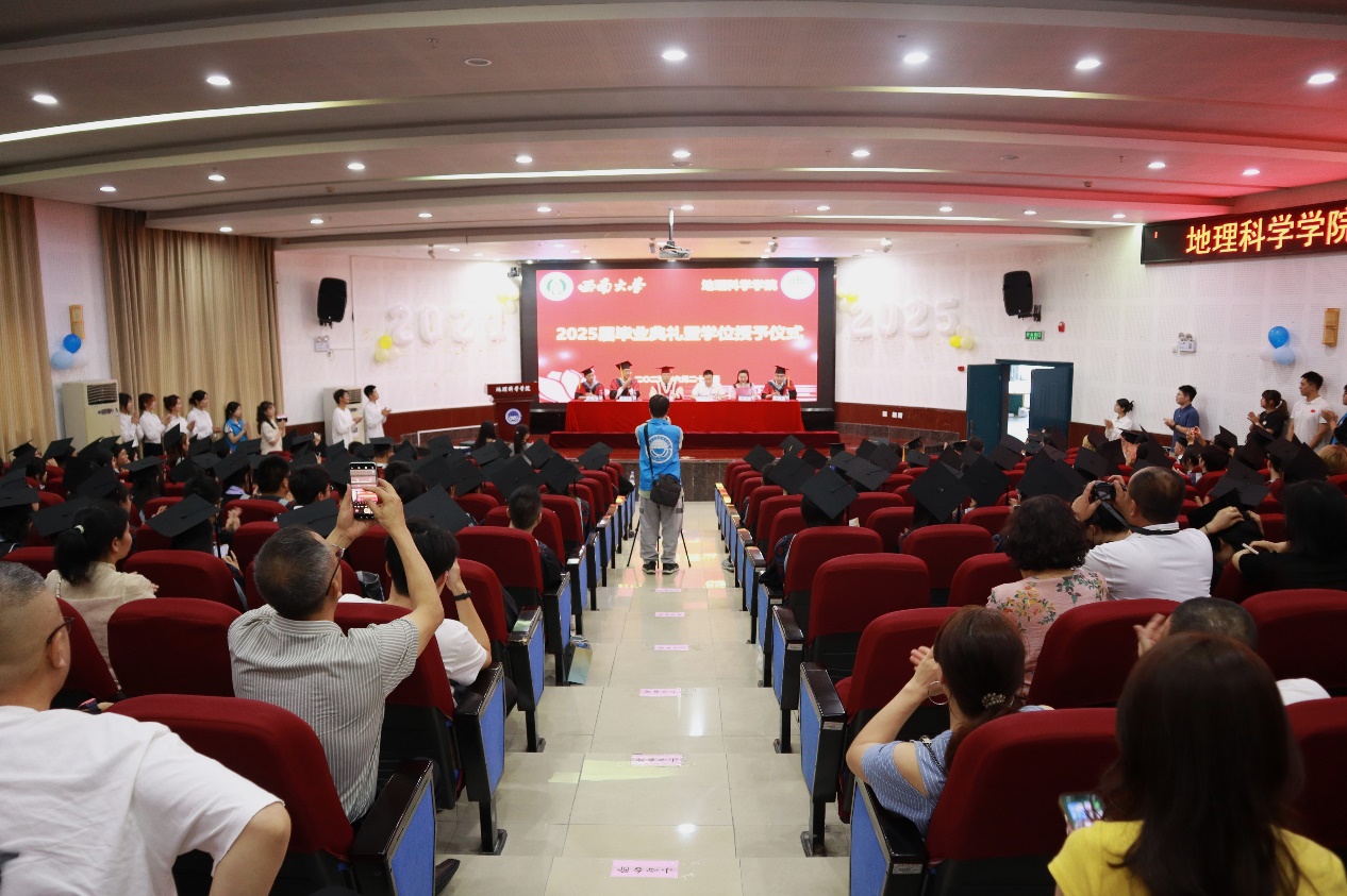 典礼最后,院长唐强以地理人的三个“坐标”为引寄语毕业生。唐院长向全体毕业生表示热烈祝贺,对各位导师、父母等致以诚挚感谢,同时回顾了学院各方面的建设成果。他希望同学们以“高程”定义精神海拔,以“经度”丈量专业深度,以“纬度”拓展创新边界,带着西大地理人的精神在人生航程中铸魂、立身、拓界。最后,唐院长祝福2025届全体毕业生们前程似锦、山高水长。
