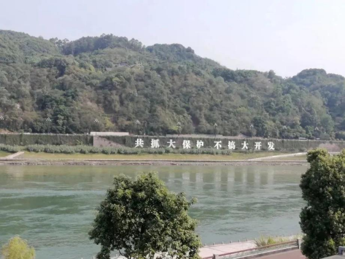 在长江公园眺望对岸白塔山,“共抓大保护、不搞大开发”的标语赫然醒目。“共抓大保护、不搞大开发”是长江经济带发展的总基调和大前提。2014年以来,宜宾大力实施了“长江生态综合治理”项目,开展生态修复、污水排放治理、沿线道路改造、绿道和亲水休闲空间建设,成效显著。