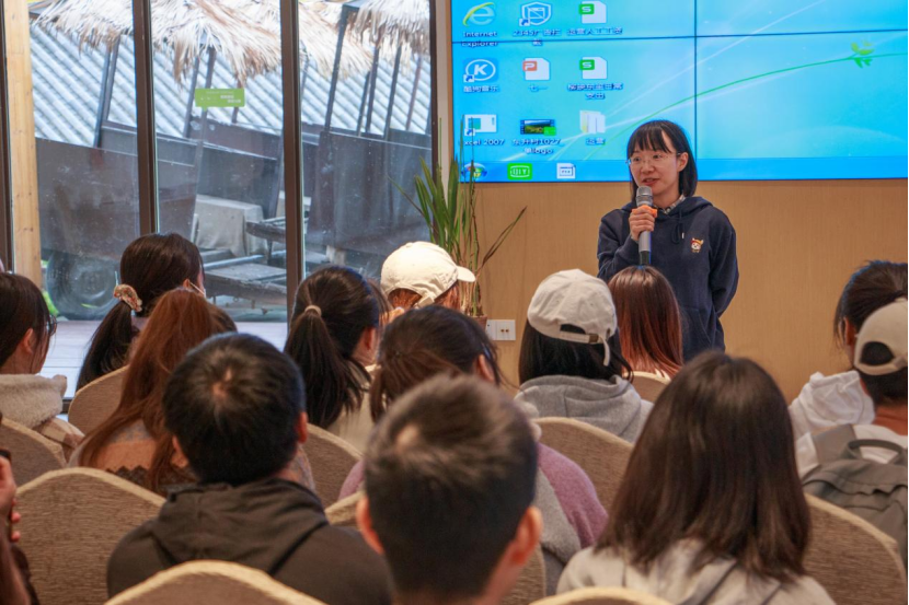 之后,实习队伍来到了东升村游客接待中心,观看了东升村的宣传片,更全面地了解东升村的发展状况。播放完宣传片,东升村第一驻村书记杜晓睿亲切又耐心地解答了同学们的各种疑问,介绍了二轮土地承包、“三变改革”、东升村发展优势、与村民有效交流途径等情况。交流现场气氛热烈,同学们踊跃提问,收获满满。答疑结束后,全体师生在杨院长的带领下向杜书记和喻老师的热情接待、耐心解答表示了诚挚的感谢,并在东升村老同志的带领下,学唱了东升村村歌。