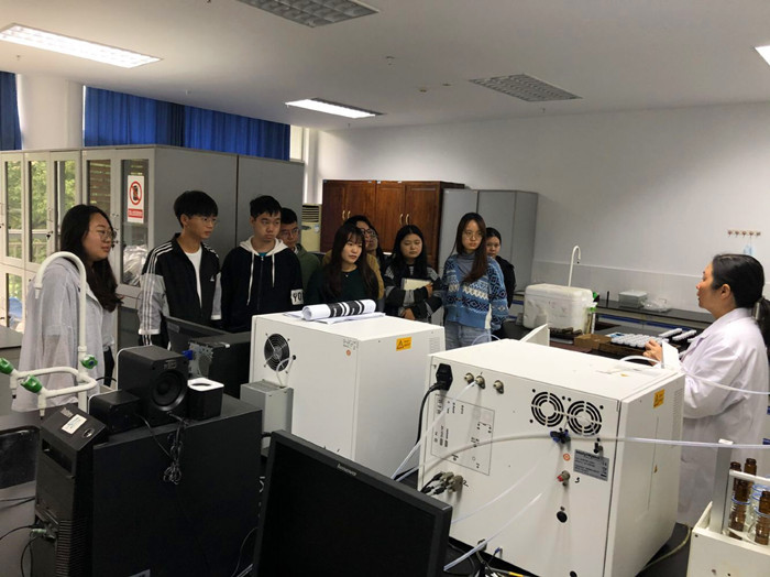 活动共分为四个方面,首先由支部党员潘进疆从实验室废弃物处理、急救应急措施、个人防护方面做了安全准入培训。随后,孙玉川就实验常见玻璃器皿使用技巧及清洗做了详细的讲授。接着,学院党委书记喻尚其以“同学们,进实验室第一件事是做什么?”的问题引入,活跃了现场气氛,并从实验室建设、实验室环保、实验规范习惯方面同与会同学进行了深入的交流。最后,支部组织研究生们进入实验室,实地参观学习了气体同位素质谱仪、高分辨率磁质谱、阴离子色谱、碳氮元素分析仪。支部党员贺秋芳、雷丽丹、刘川对以上仪器的工作原理、操作规范、数据分析、新技术开发方面做了详细的讲解。