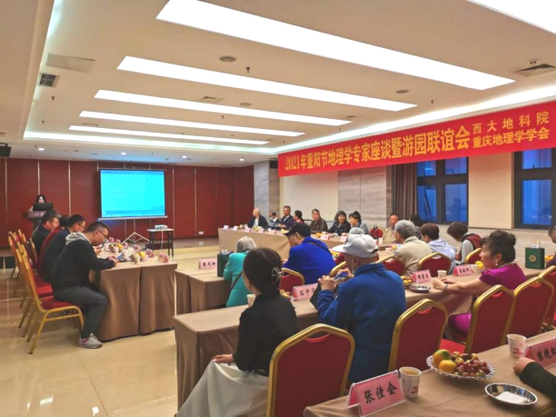 金秋十月爽,九九话重阳。在这尊老、敬老、爱老的节日里,52手机a片 联合重庆地理学学会,于10月14日上午在桂园宾馆丹桂楼举办了“2021年重阳节地理学专家座谈暨游园联谊会”,邀请地理学界的老前辈们共度重阳佳节。