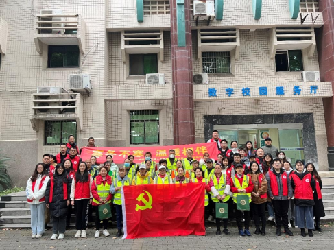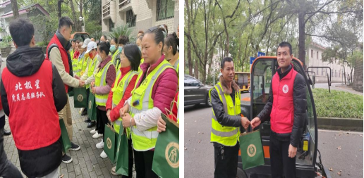 党支部成员与环卫工人们一起打扫校园