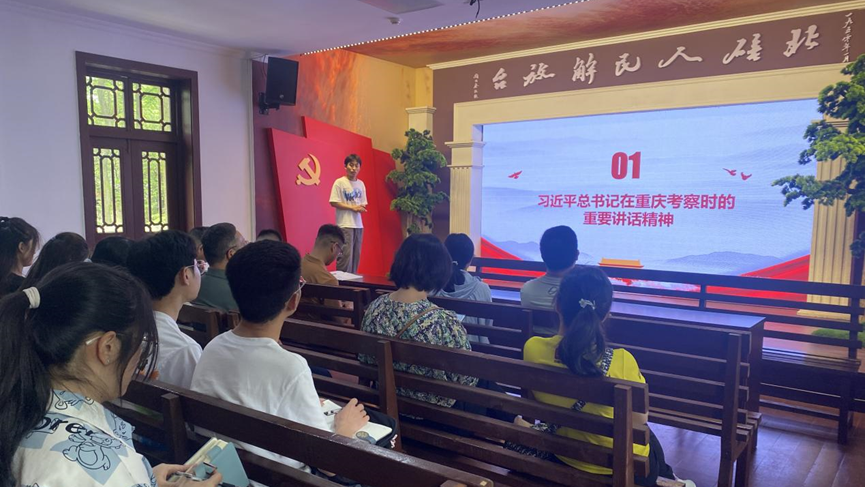 随后,人文地理学研究生第二党支部书记谢传峰同志带领大家学习《条例》《习近平总书记在重庆考察时的重要讲话精神》《习近平总书记主持召开新时代推动西部大开发座谈会的重要讲话精神》《市委书记袁家军来校调研并主持召开青年代表座谈会的重要讲话精神》等。学习过后,与会同志纷纷展开讨论,踊跃发言。