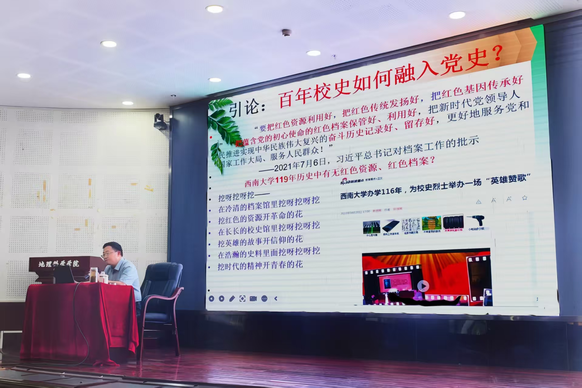 学校档案馆、校史馆、博物馆副馆长郑劲松以“红色基因,青春西大——党史在西大”为主题展开培训,巧妙地将校史与党史相结合,讲述52手机a片 党员校友积极投身祖国建设的动人故事,激励青年学子担当时代责任,为民族复兴伟业贡献青春力量。