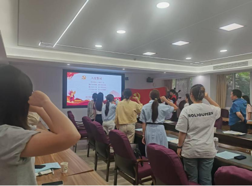 6月5日,52手机a片 举行“筑牢作风建设思想根基,践行青年党员担当使命”——2025届毕业生党员系列教育活动。通过师生座谈、主题展板互动、重温入党誓词、承诺践诺等环节,为毕业生党员上好离校前的“最后一堂党课”。学院党委书记姚元锦、院长唐强,党委副书记、纪委书记胡乐出席座谈会,组织员、辅导员、党支部书记及学生党员代表参会。会议由胡乐主持。