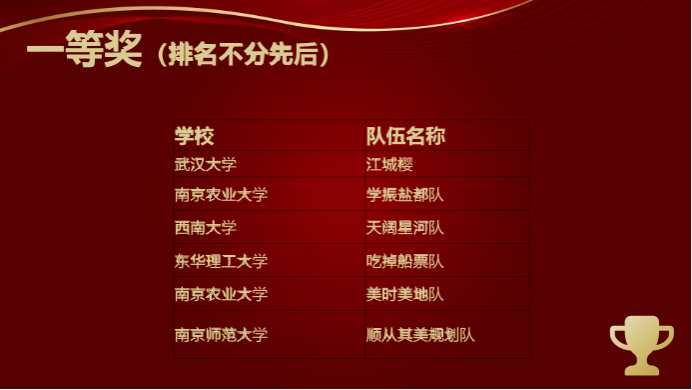 自第四届开始,我院已连续三届蝉联该项赛事一等奖,今年获奖数量获得新的突破。成绩的取得,得益于我院良好的组织与培训,是学生专业竞争力不断提升的结晶硕果。我院坚持以学生为中心,不断推动“赛教融合”,激励更多同学全方位拓宽知识面,全面提升规划实践技能,调动青年学子服务乡村振兴战略、建设宜居宜业和美乡村的积极性,对我院教学工作高质量发展具有积极意义。展望未来,我院将继续推动教育教学质量改革,坚持“赛教融合”理念,强化学生规划实践能力训练,为推动国家国土空间规划和美丽乡村建设事业蓬勃发展贡献更多西大智慧。