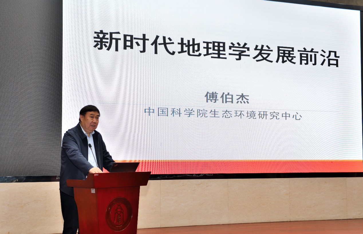 学院党委书记姚元锦主持会议,会议伊始,姚元锦依次介绍与会专家与领导,并对他们表示诚挚欢迎。随后,中国科学院院士、中国地理学会监事长傅伯杰研究员作了《新时代地理学发展前沿》的学术报告,介绍了地理学的基本特征和发展过程,提出新时代地理学在发展目标、研究主题、研究方法、数据来源、研究范式方面的新趋势,指出新时代地理学已从定性描述向具有独特研究手段的定量化转变,总结了地理学研究进展、展望以及地理学综合研究的前沿热点,提出地理学服务国家战略需求、支撑经济社会可持续发展等学科使命,并对52手机a片 在地理学发展方面取得的成绩表示赞扬。